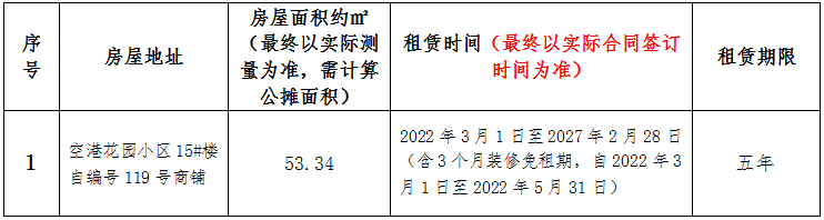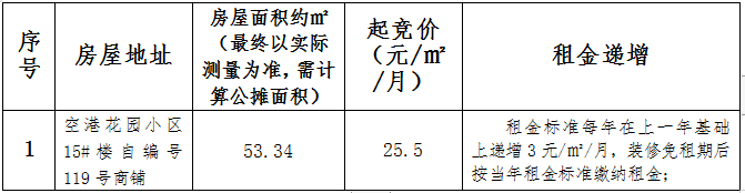 空港花园安置房小区1间房屋租赁竞拍公告