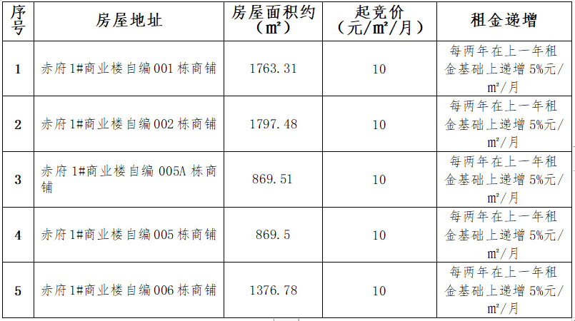 赤府安置房小区独栋商铺租赁竞拍规则
