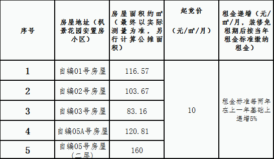 枫景安置房小区房屋租赁竞拍公告