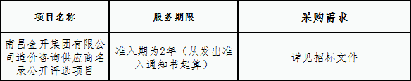 金开星空(中国)造价咨询供应商名录公开评选项目招标公告