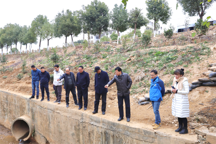 董事长谢荣华队查看龙潭水渠、青岚水渠黑臭水体整治情况