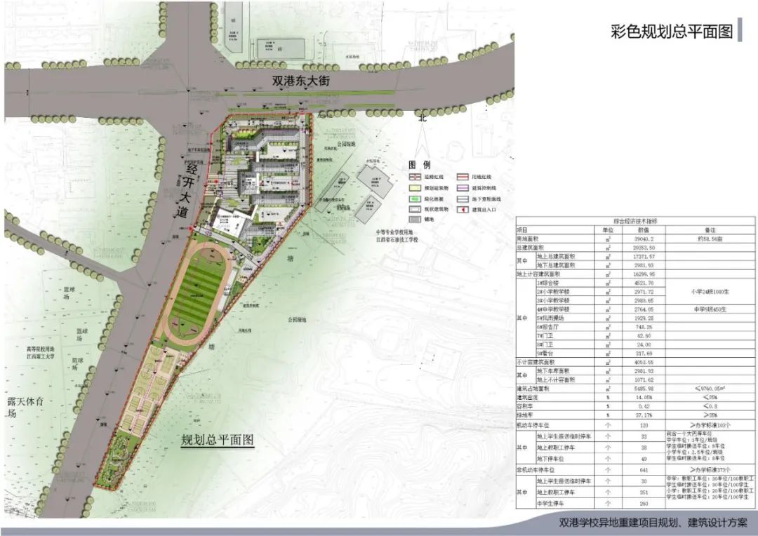 该项目位于南昌市经开区,双港东大街与经开大道交汇处,双港东大街以南,经开大道以东,占地面积58.56亩,总建筑面积20277.01平方米,由金开星空(中国)下属子公司江西金开正合实业有限公司承建,主要建设内容包括1栋综合楼、2栋小学教学楼、1栋中学教学楼、风雨操场及相关配套设施,规划设置小学24个班、中学9个班,建成后可容纳1530名学生就读。